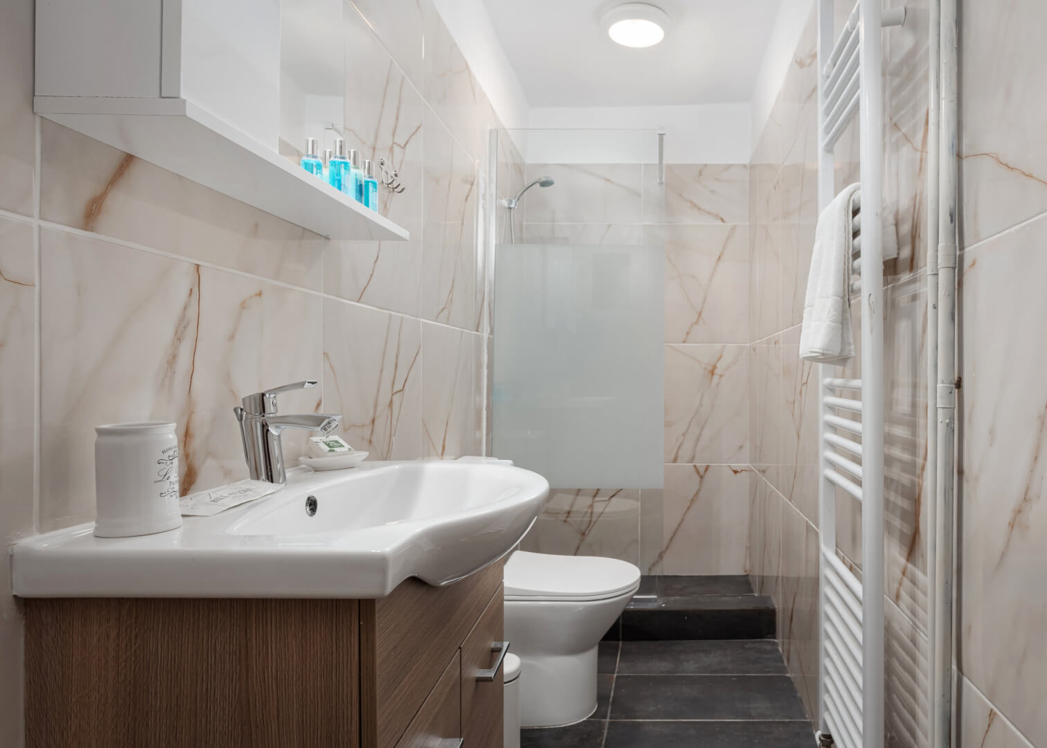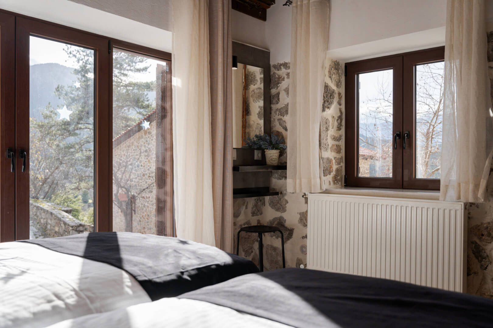 The chalet’s 5 bathrooms, each equipped with a full shower, provide convenience and privacy for every member of your group. Immerse yourself in the beauty of the Parnassus region during the day, and return to the comfort of the Woodstone Chalet N2 in the evening to relax and rejuvenate.