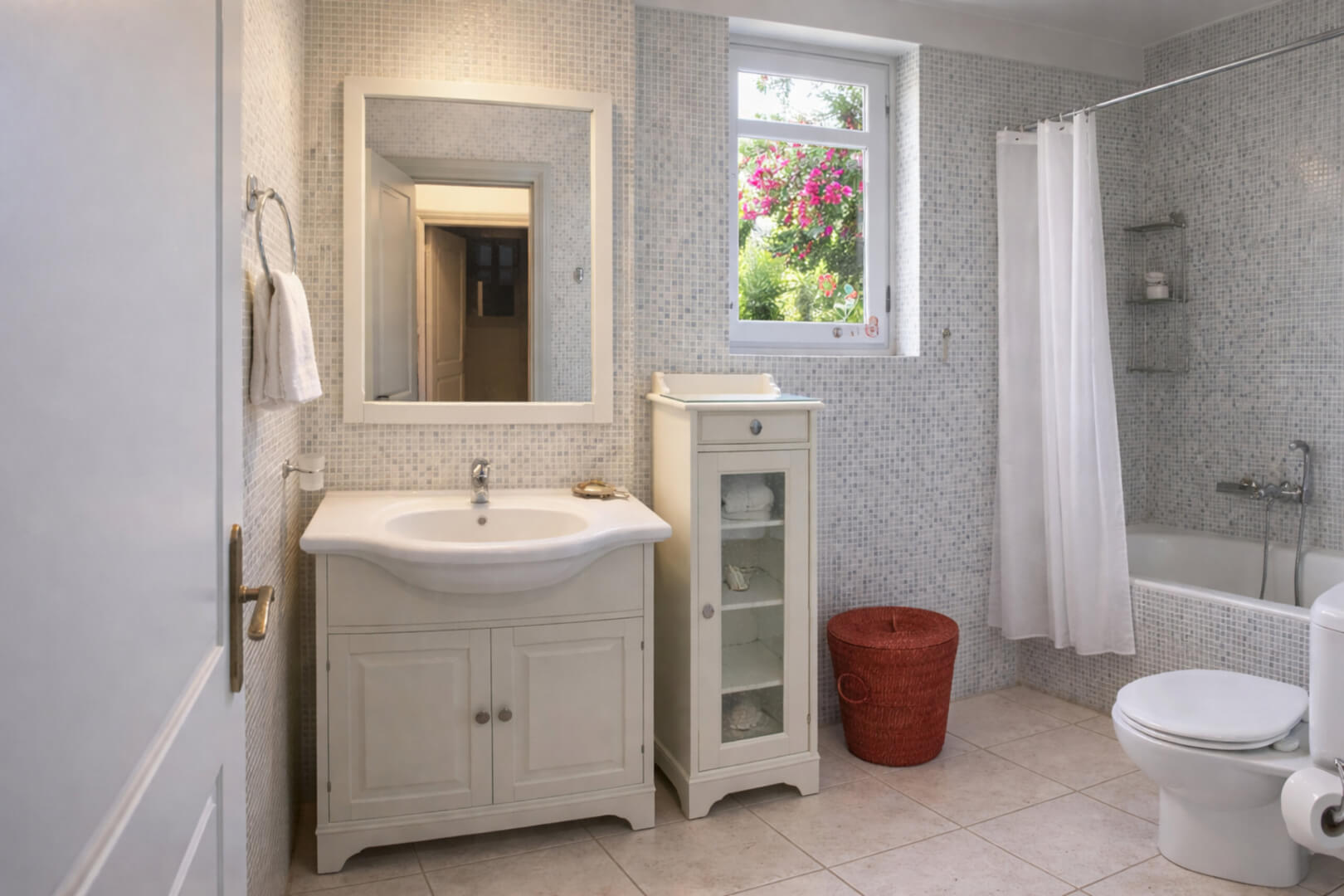 For added convenience, Villa Kohyli includes two separate bathrooms—one with a modern shower and the other with a relaxing bathtub—ensuring comfort for all guests throughout their stay. The property also features private, outdoor parking, offering ease and peace of mind for guests traveling with a vehicle.