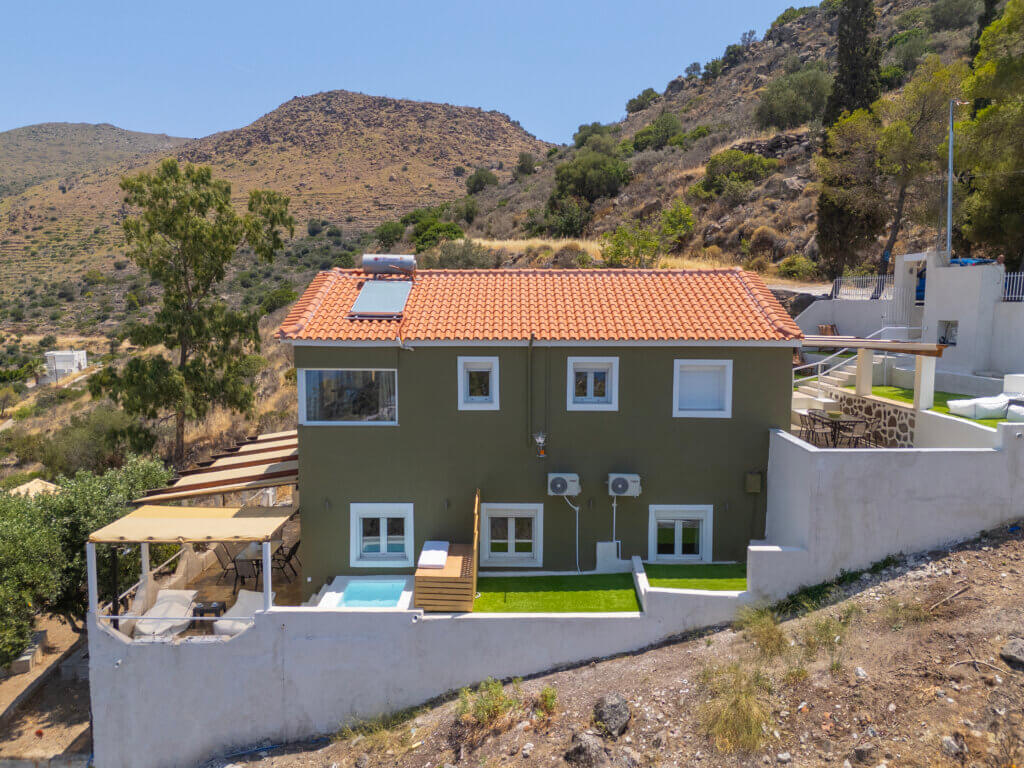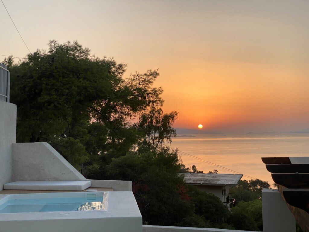 Discover Amelin Villas Aegina, a luxury villa complex on Aegina Island, Greece. The property offers two elegant 75 square meters private villas, perfect for couples, families, and small groups. Each villa features a private outdoor jacuzzi, modern interiors, and a balcony–patio to relax and enjoy the surroundings.