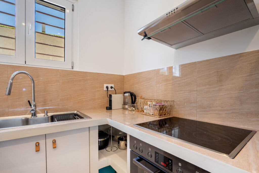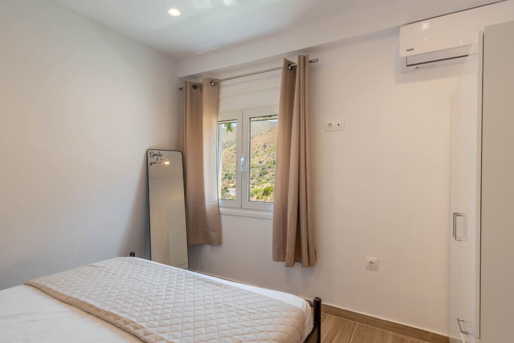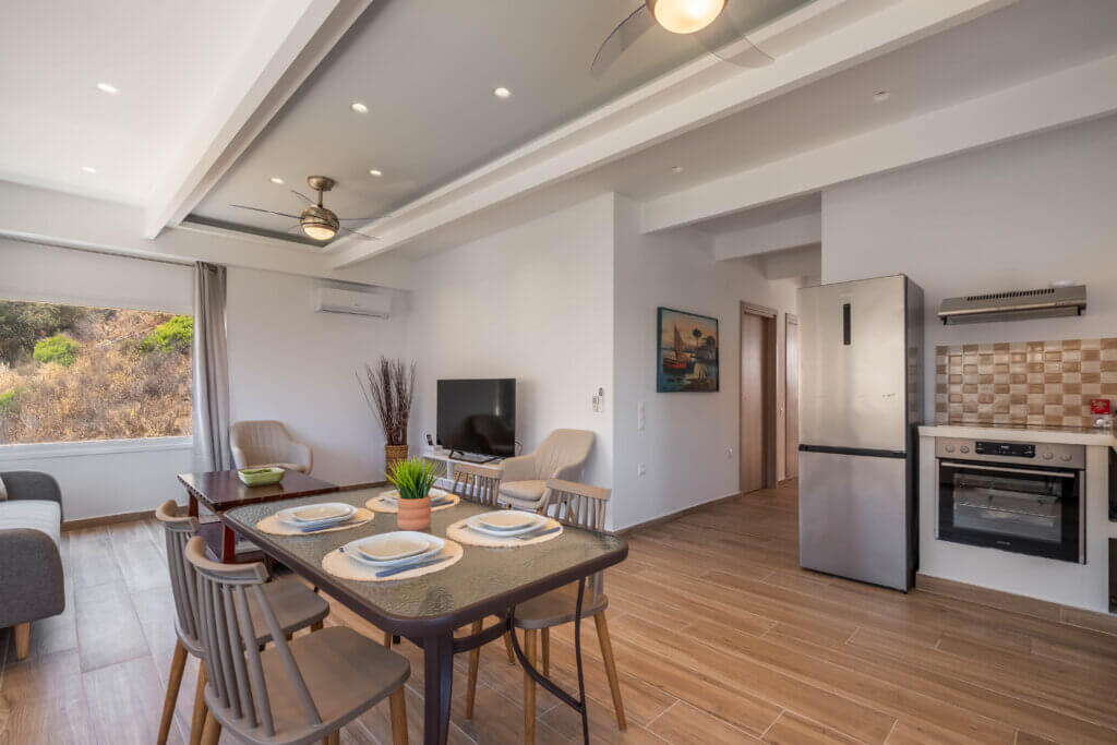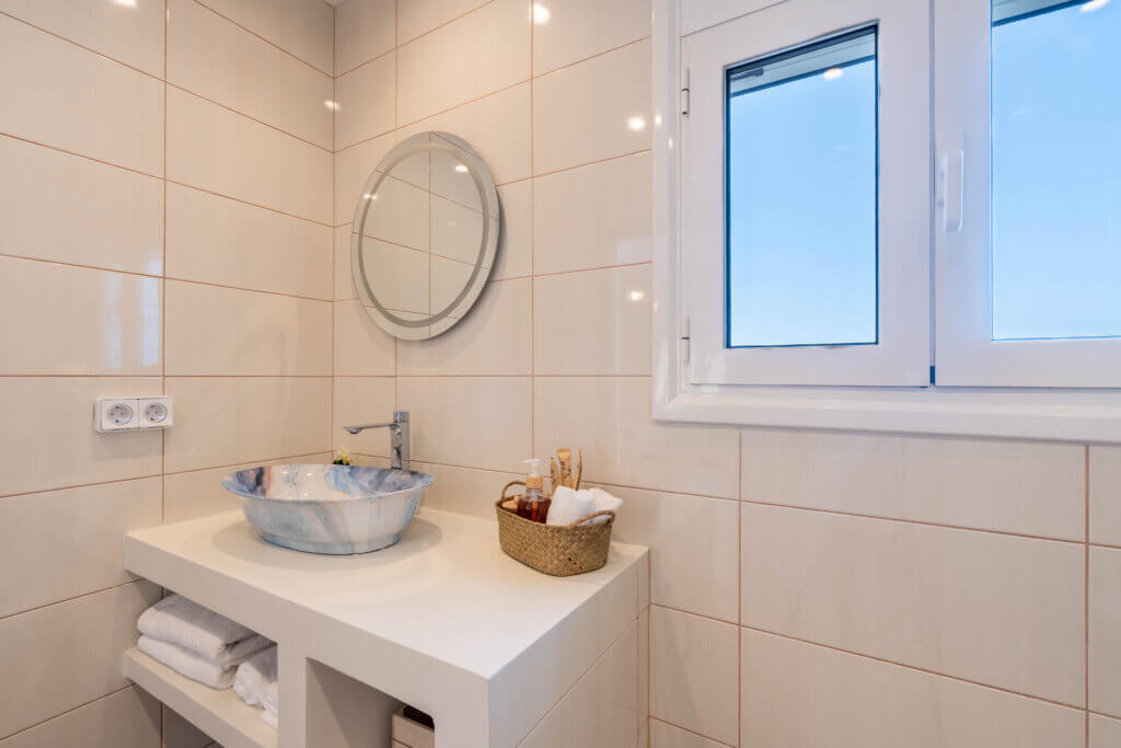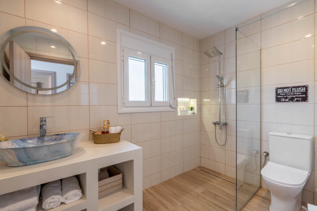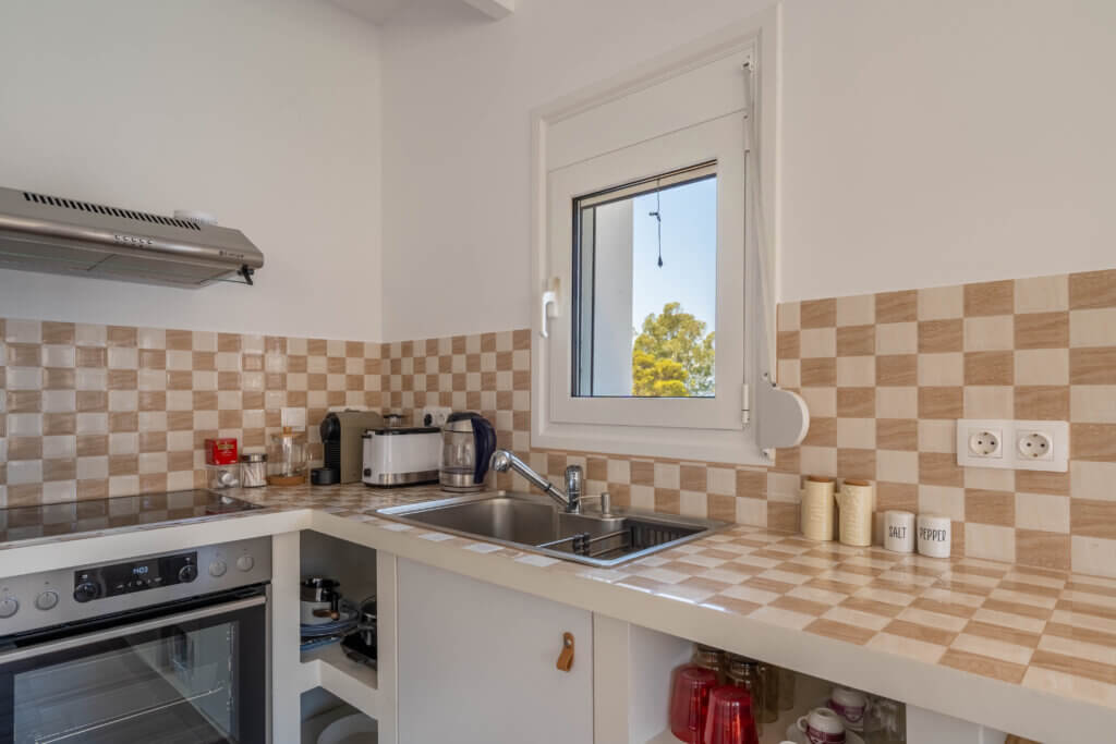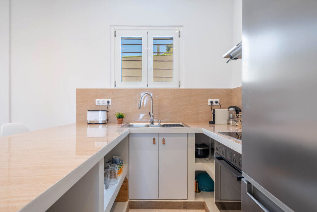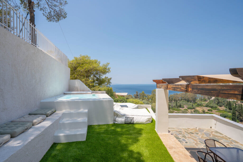 Villa Panorama offers 75 square meters of stylish and comfortable living space. The villa has two queen-size beds, making it perfect for couples or small groups. Guests can enjoy a private outdoor jacuzzi and a balcony–patio for peaceful moments outdoors. The property also provides a fully appointed kitchen for effortless meal preparation, along with a refined, well-designed bathroom that ensures comfort and practicality throughout your stay. Furthermore, the modern design and premium amenities make Villa Panorama ideal for both romantic escapes and family holidays. It combines privacy, luxury, and convenience in one beautiful setting.