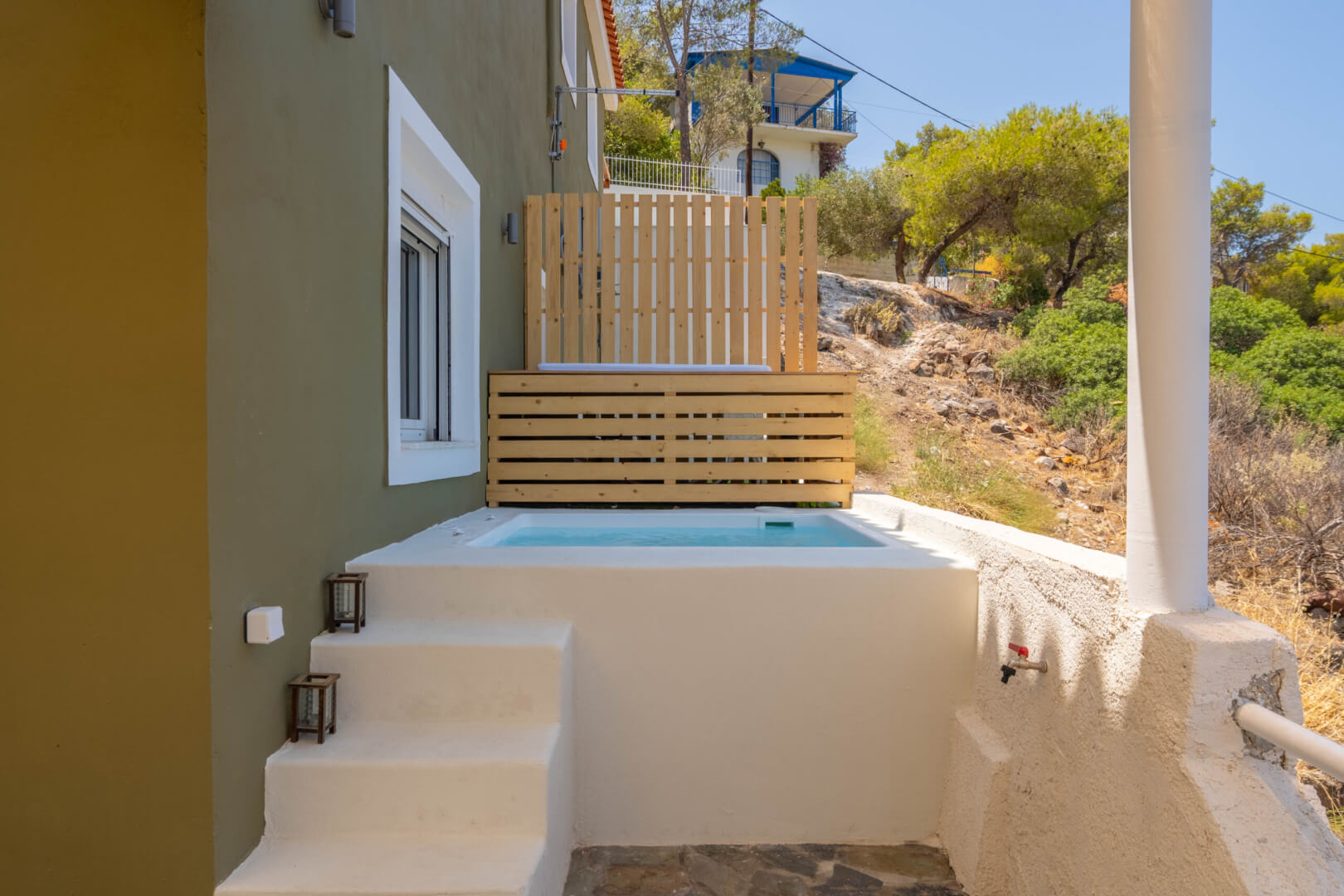 Villa Paradise is a spacious 75 square meters villa that blends elegance with functionality, featuring one premium queen-size bed and two single beds ideal for restful nights. Guests can unwind in the private outdoor jacuzzi or enjoy morning coffee and sunset drinks on the balcony–patio. The villa also includes a fully equipped kitchen and a modern bathroom, offering everything needed for a comfortable and convenient stay. Perfect for couples, honeymooners, or families seeking a relaxing escape, Villa Paradise ensures a memorable stay in Aegina with every detail thoughtfully designed for comfort.